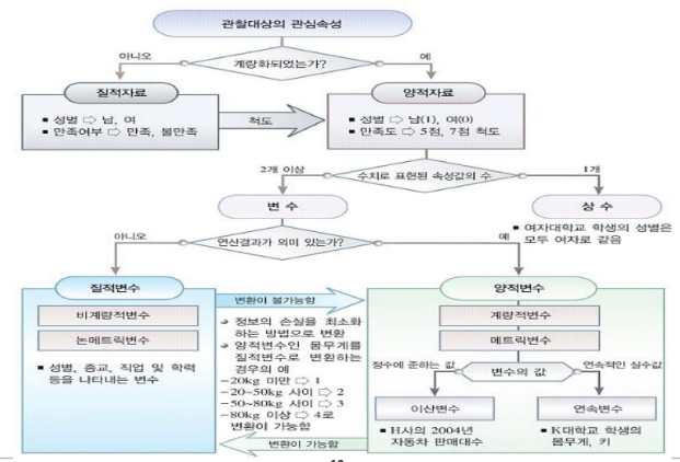 자료에 특성에 따라서 어떤 분석방법이 달라진다. 쉽게 이야기 하면 공식이 달라지는 것이다. 공식이 달라지기 때문에 그에 따른 방법론들이 달리 사용이 된다. 이를 구별해야 후에 쉽게 적용할 수 있다.